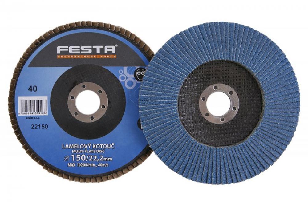 Zrnitost: 40 Druh Zrna: oxid zirkoničitý Pojivo: umělá pryskyřice Podkladový materiál: pružná tkanina-100% bavlna (240-260g/m2) Provedení: vyhnutý vnitřní průměr: 22,2mm Max. Pracovní rychlost: 80m/s Max. přípustné otáčky: 10200 1/min.