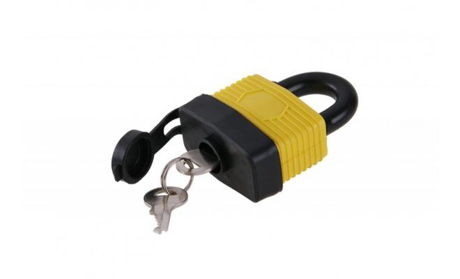 60mm ocelové tělo potaženo plastem pro maximální odolnost proti vodě a vlhkosti. Oblouk tvrzené oceli potažený plastem pro lepší odolnosti proti prořezání Váha: 430g 2 ocelové klíče.