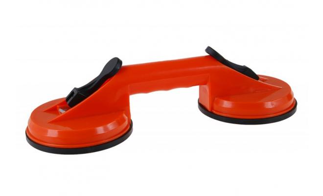 podtlakový plastový držák dvojitý - dvoupřísavkový průměr přísavky 11,5 cm nosnost max. 50 kg použití : při manipulaci se sklem - okny, dveřmi, vytrínami, autoskly apod., manipulace s většími formáty dlažby a obkladů a pod.