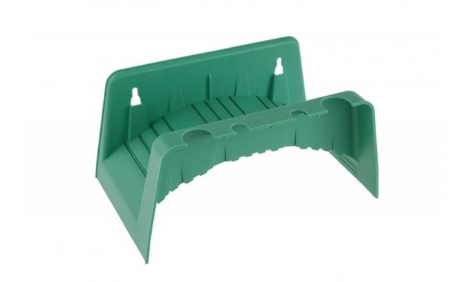 Držák zahradní hadice, možnost upevnění na stěnu, odkládací prostory na koncovky, stříkací pistole a jiné.