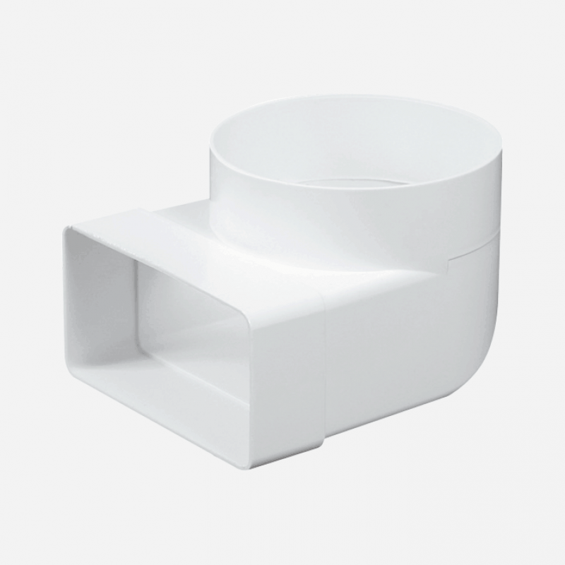 Slouží k přechodu z plochého ventilačního vedení na kulaté při přechodu z vertikálního vedení na horizontální. Další informace na www.denbraven.cz.