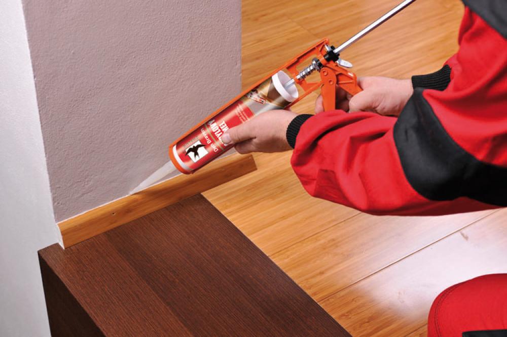 • Tmelení spár podlahových lišt, mezi zdivem a schodištěm;